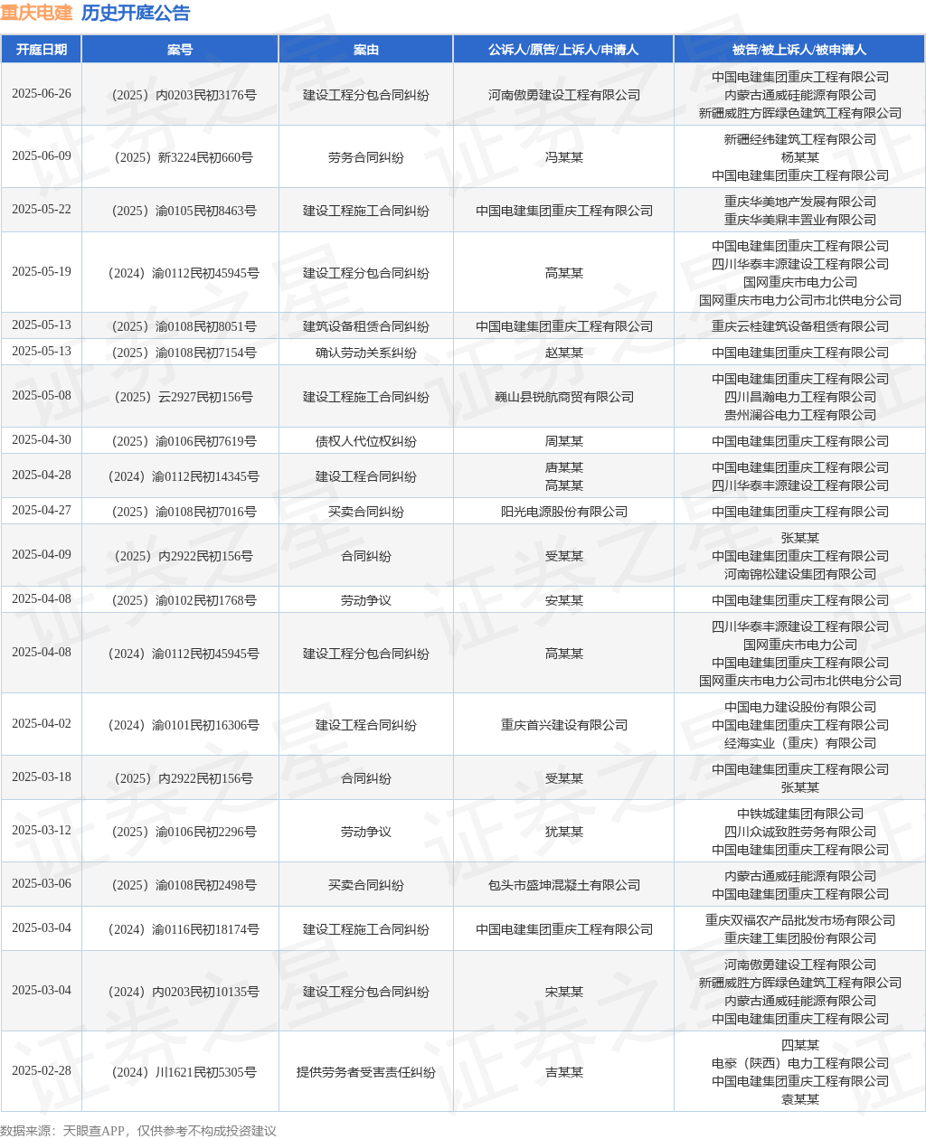 本站消息,根据天眼查APP显示配资行业查询,近日公布了一则中国电建集团重庆工程有限公司作为被告/被上诉人的开庭公告,详细内容如下: